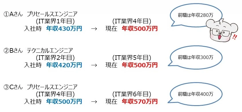 弊社では業界年数1,2年で入社してくるメンバーが多いため、スタートは大体400万円台となりますが